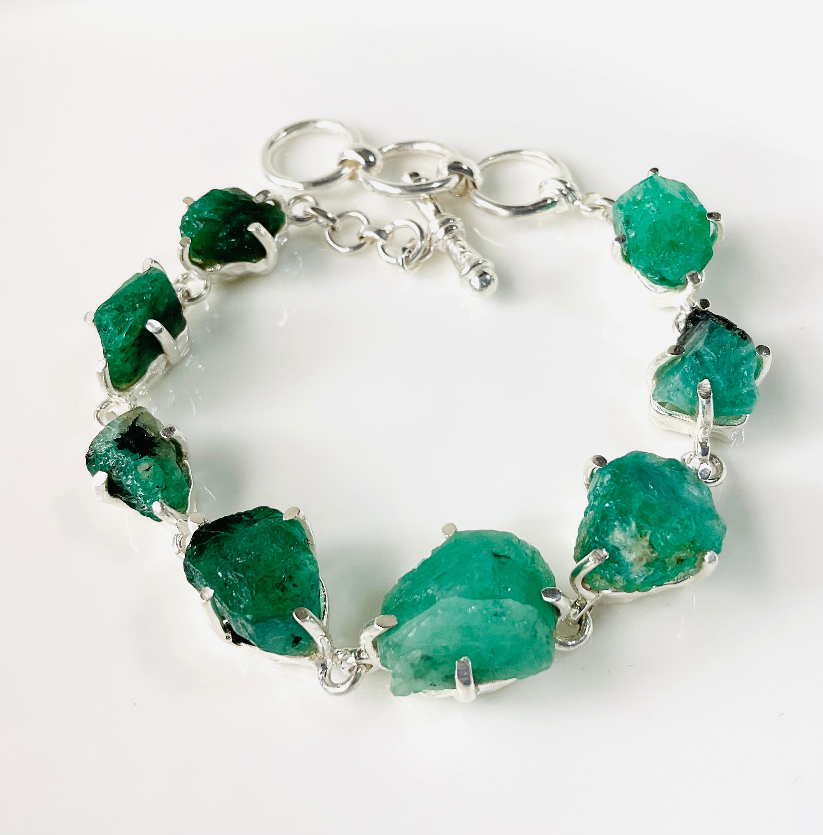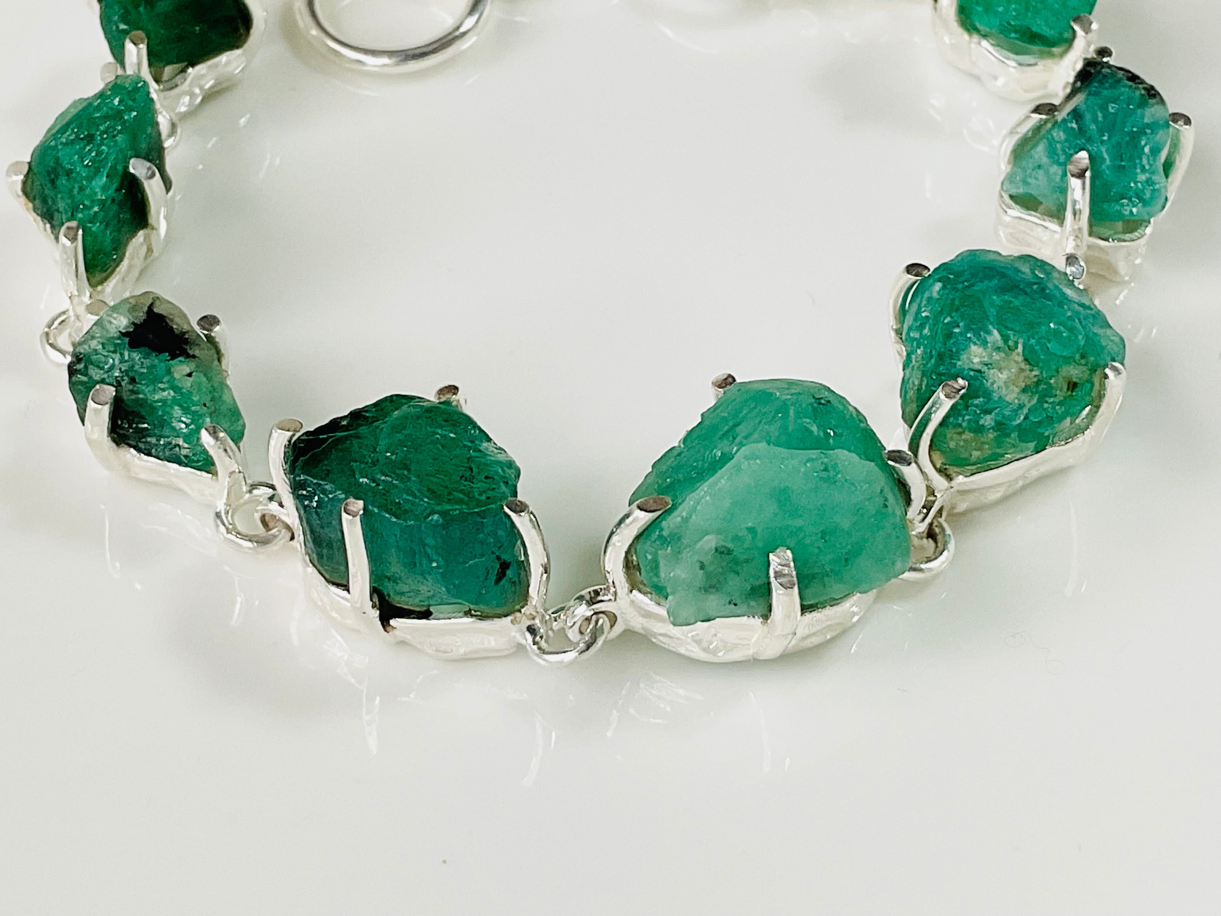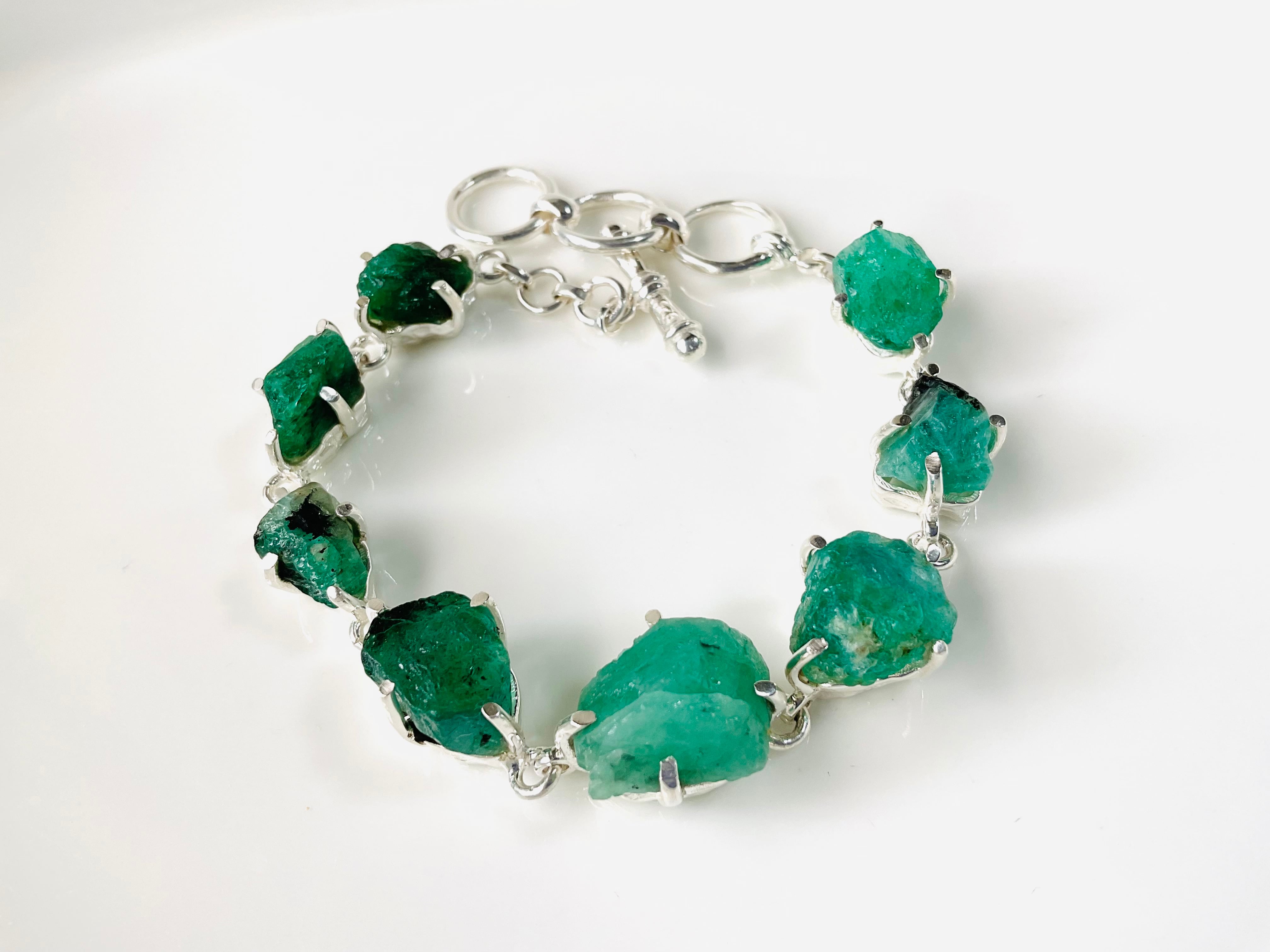 タキオン化されたエメラルド原石の銀のブレスレット