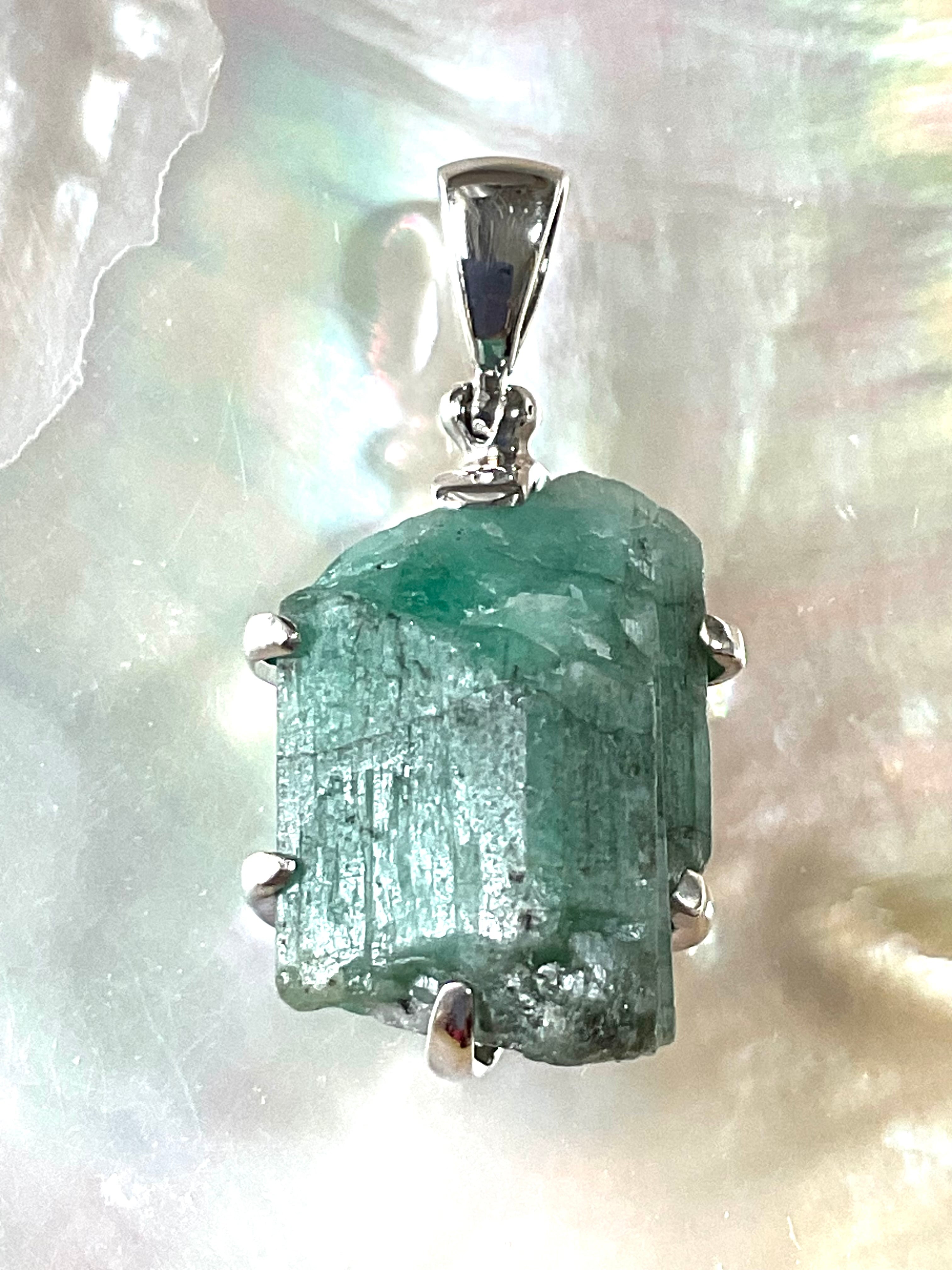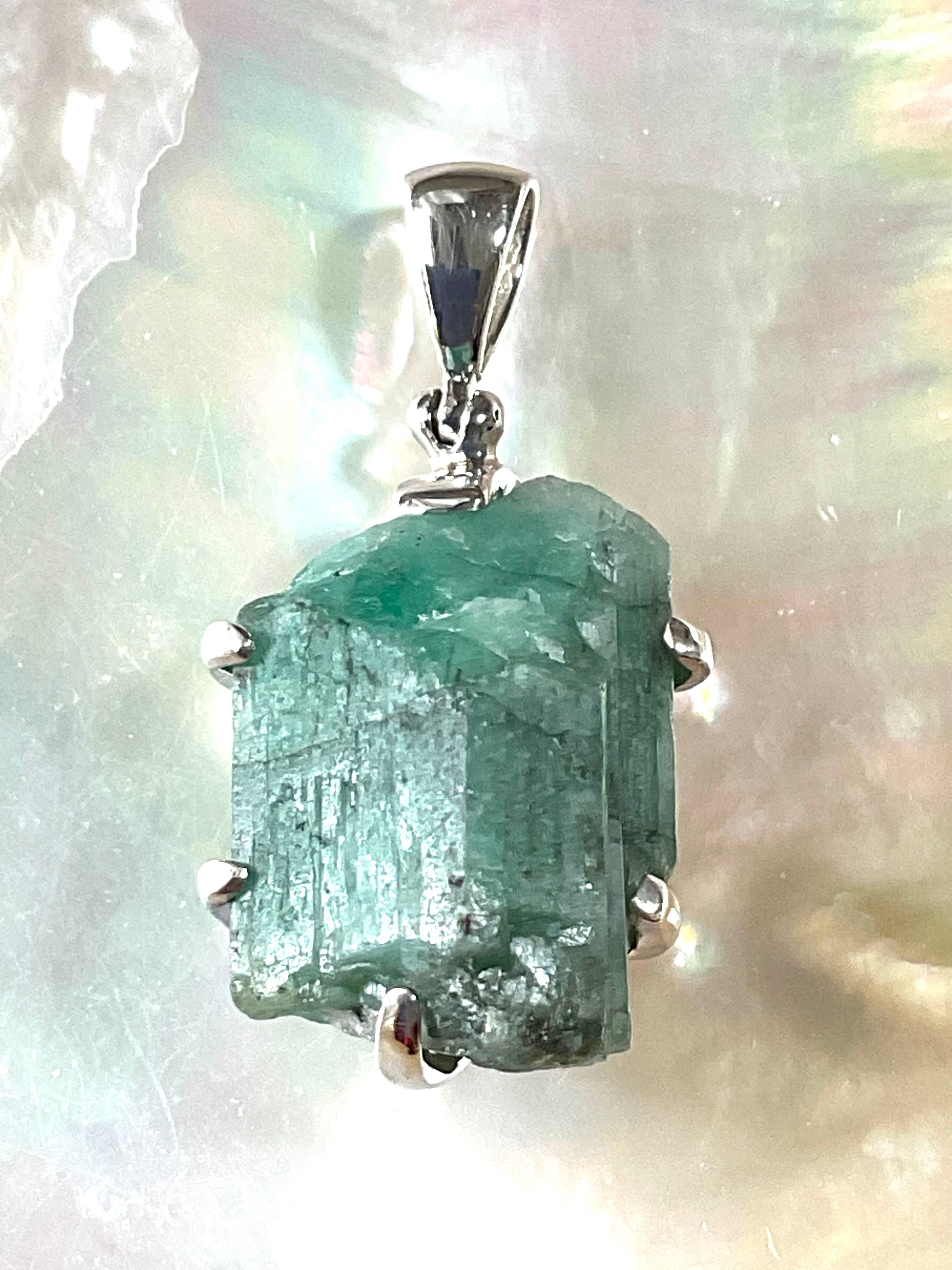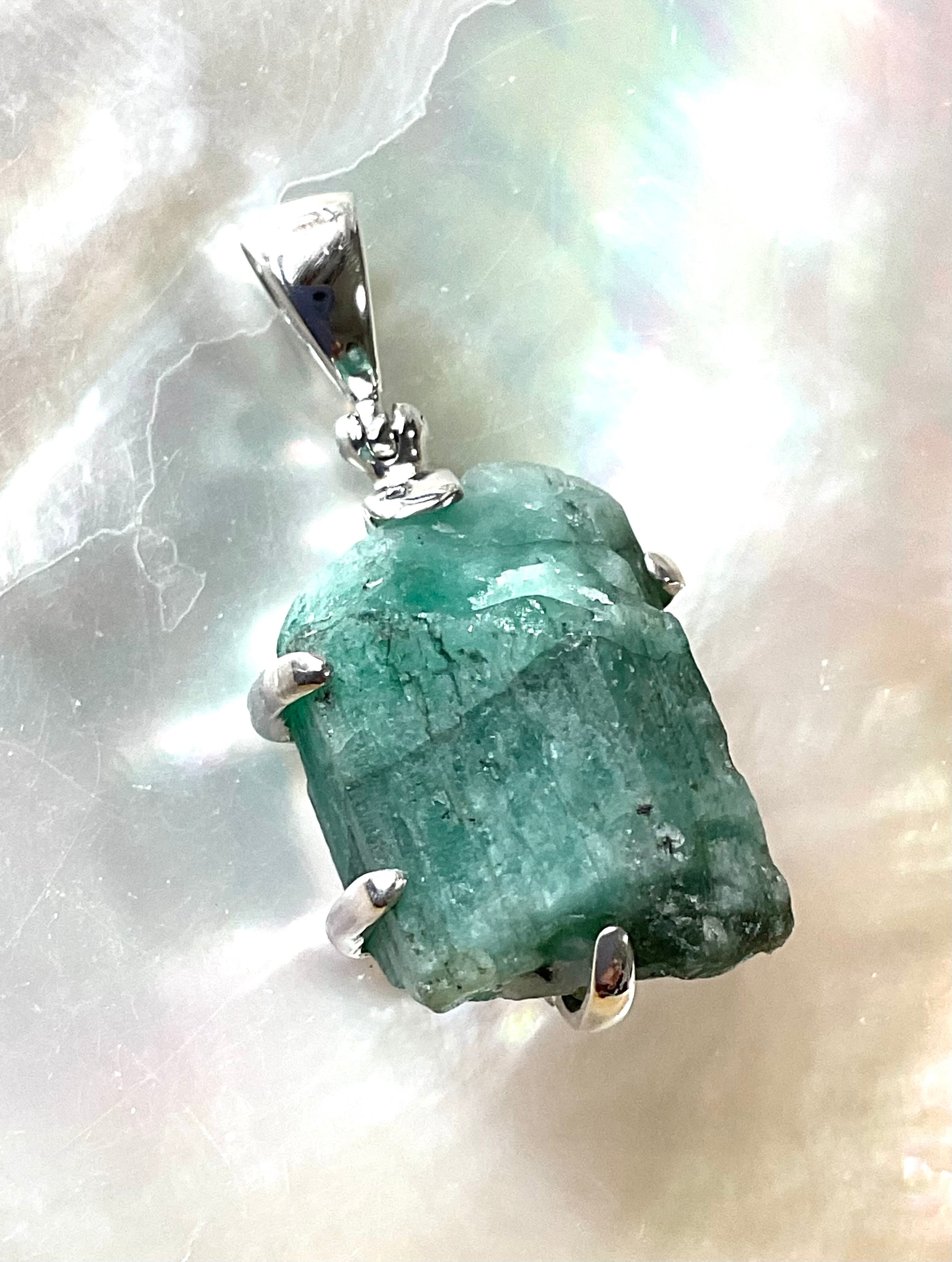 タキオン化されたエメラルド原石の銀のペンダント